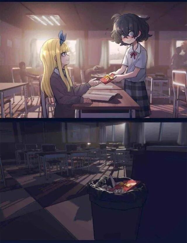 这部作品,讲述的是校园里两个小女孩的日常故事——其中,小女孩Poka是个盲人。如果你只看了几眼片段,大概率会下意识地认为,这两个小女孩是好朋友,因为金发的女孩会对Poka嘘寒问暖,关心她的生活,两人的关系看起来很不错。但事实上,随着剧情的发展,读者会发现金发女孩正是Poka的诸多霸凌者之一,所有的嘘寒问暖,不过都只是因为Poka看不见,为了看她出丑而演的一出戏。