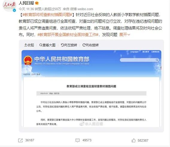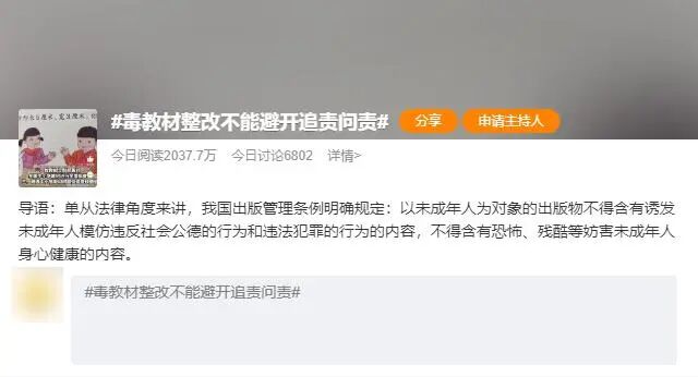 随着网友们的声讨,“毒教材整改不能避开追责问责”正式登上微博热搜。