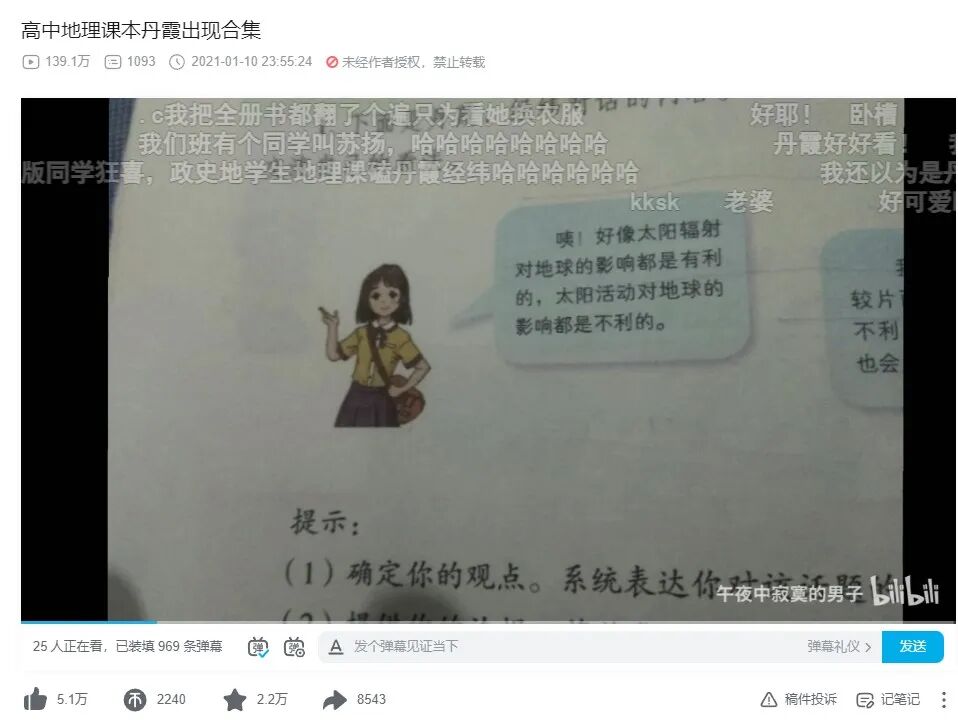 有网友自发在教科书中“考据”,制作了视频《高中地理课本丹霞出现合集》传到B站上,现在的播放量为139万。