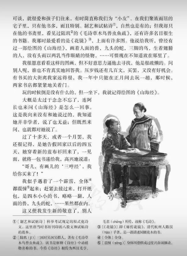 语文教材中《阿长与〈山海经〉》的优秀插图