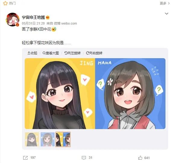 因为这个可可爱爱的李静实在太讨人喜欢,效率极高的微博画师大手们,很快就开始了对李静的二次创作,比如“同桌的李静”。