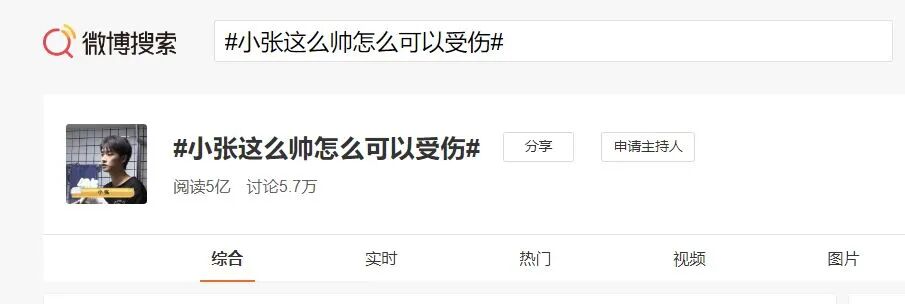 甚至在事件进一步发酵后,“小张这么帅怎么可以受伤”这一衍生话题,竟也冲上了热搜榜,阅读量高达5亿。