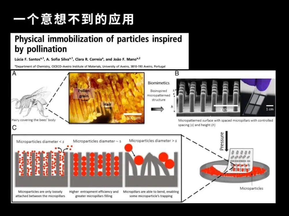 得出蜜蜂毛多的研究,已经应用到了医疗行业,工程师发明出了因为带“毛”,所以能够增加更多药物,帮助治疗伤口的药贴。得出赛马和包括人类的众多动物相同,尿尿都需要21秒左右的研究,则有助于让人类更加了解流体力学,帮助到类似水利建筑的大型工程。