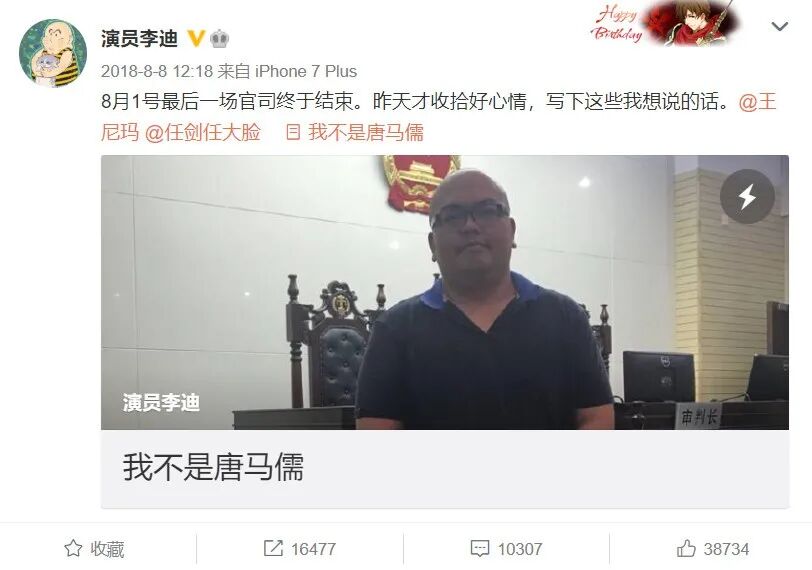 2018年8月8日,原暴走大事件艺人,唐马儒的扮演者,演员李迪,在个人微博上发布文章《我不是唐马儒》,将自己与暴漫团队积攒数年的恩怨公之于众。