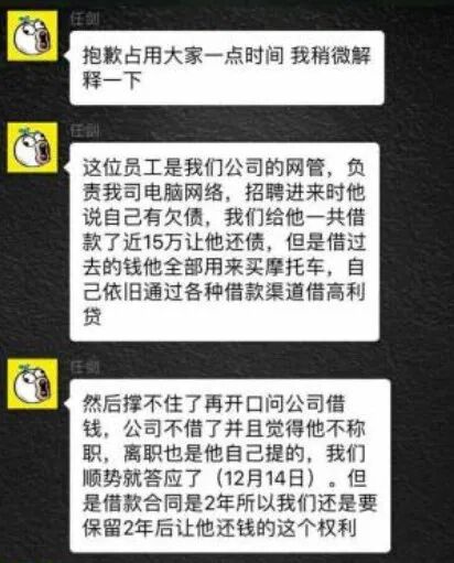 很快,暴漫方面就此事作出回应,CEO任剑出来当面说明了情况。大致意思就是,此人确实曾经是暴漫的员工,但充其量只是普通的网管,并不是所谓的王尼玛真人扮演者,王尼玛自始至终都只有一人,此人只是盗用了阿香的微博号散布谣言,并且此人还身负巨额的高利贷债务,将其塑造成了离职后反向讹诈公司的小人角色。