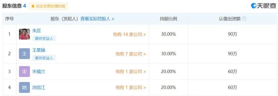 首先要声明的是关于钱的问题。很多媒体在报道此次离职事件时,一定都会聊到张策在朱亘公司内部的待遇问题。根据天眼查所查到的企业信息来看,朱亘旗下目前共有14家创业公司,而负责制作短视频《朱一旦的枯燥生活》的,是山东光曜联晟文化传媒有限公司。公司的主要股东包括朱亘在内共有四位,其中确实没有张策的位置。