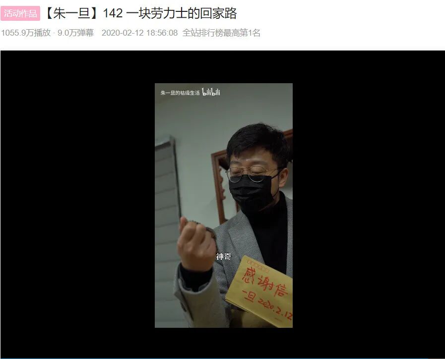 几天过后,随着后续几期视频的推出,粉丝数已经轻松涨到了五六十万,朝着百万大关迈进。到了第七期以后,朱一旦彻底火了,抖音上最终有了400万粉丝,视频被搬运到B站后,他又获得了500万的关注,以有史以来最短的时间,登上了B站的百大UP主颁奖典礼。