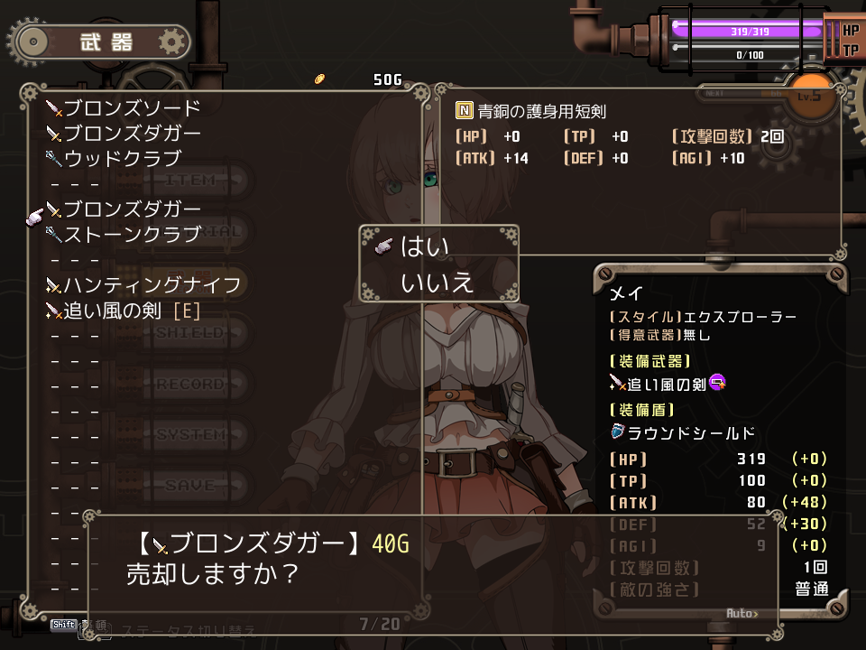 《忘》这种想主动适应时代的方向感很强,游戏的其他地方也有加持的合力。比如因为简化了战斗,角色主要能力体现在了武器切换上,游戏中玩家同时可带着20件武器,可以根据情况掏出不同的应对局面,每击败一个敌人也会获得它的武器,这样一看很快道具栏就会被填满?没关系,《忘》给了玩家一个其他RPG很少见的功能,可以在冒险途中原地卖掉武器,虽然好像有点不合理,但不用在意细节。