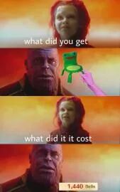 其中的一个Meme是这样的:灭霸为了防止星球资源枯竭,将卡魔拉母星上的一半生物消灭。做出如此残忍举动的灭霸,在面对卡魔拉的质问时,却云淡风轻的将这件事情表述为“拯救星球的小小代价罢了”。