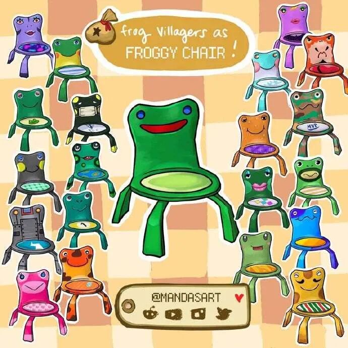 Reddit用户mandasart将《动物森友会》中所有的青蛙“拟椅化”