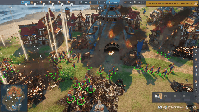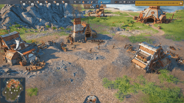 由于本次Beta试玩的内容仅仅只开放了三个非常短的新手教程和进行快速对战的“冲突”模式,内容相当有限,《工人物语》系列比较有乐子的战役模式暂未开放,不免有些遗憾,但在冲突模式中也已经包含了完整的建设战斗玩法,让我们得以初窥门径。