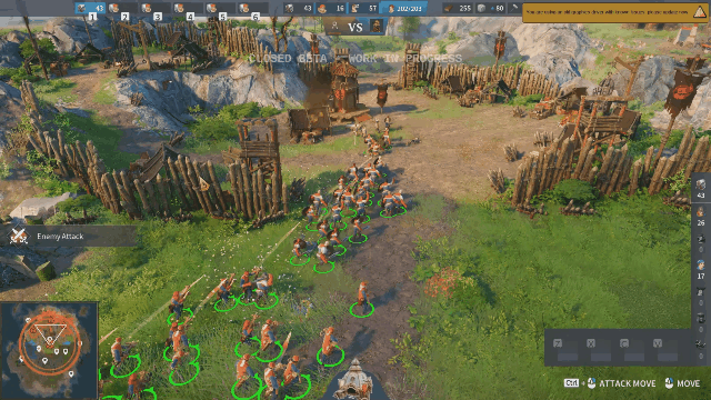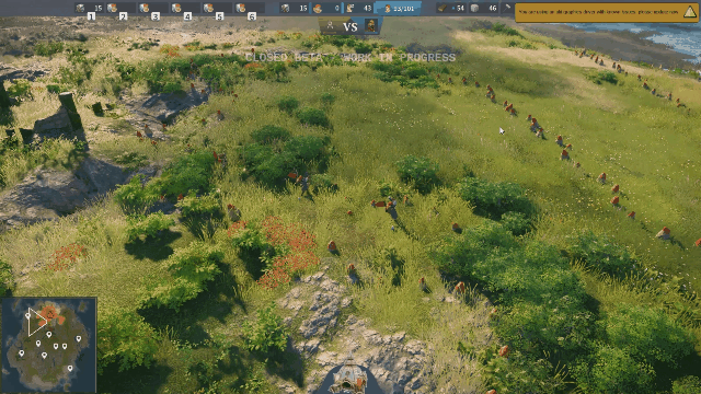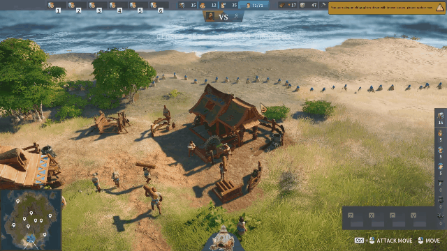 总的来说,本次的Beta试玩开放的AI对局难度较低,AI喜欢快速开拓大量领地,同时派出巡逻小队骚扰你的领地,但只要提早修建好简单的防御工事,敌军骚扰基本造不成威胁,敌方也会因为过多的扩张导致生产线乏力,无法将资源优势转变为军事优势。