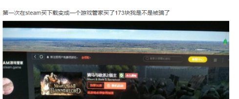 游戏在3月30日发售后,一直有玩家在贴吧发帖称:自己在Steam,或是骑砍中文网上购买了游戏,但下载之后却玩不了,原先的Steam也变成了一款叫游戏管家的软件。
