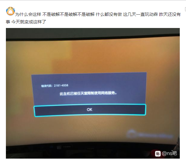 显然发生这种情况,你可以考虑换台NS了,而任天堂在账户使用条约里也明确表示:如果账户违反了服务使用条约被限制,任天堂将不负担任何责任。这也意味着,任天堂已不承认这台NS,想要解封很难。
