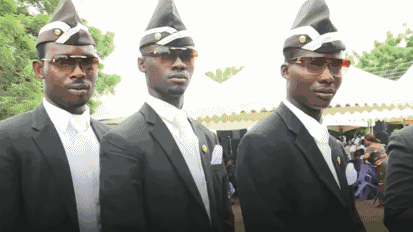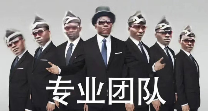 黑人抬棺的模仿与梗图层出不穷,这也使原视频中的几个主角成为了大众的焦点。有人称他们为专业团队。