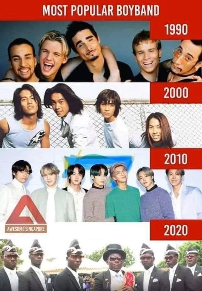 各种要素融合还产生了双倍的快乐,甚至老图接新梗都有了一股别样的风味。比如说下图这个“五黑一棺”: