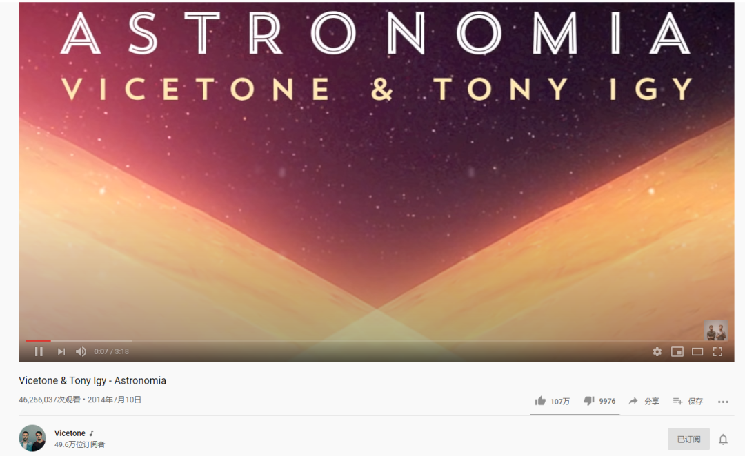 悲剧发生之时与黑人抬棺相映成趣,这其中自然也少不了BGM《Astronomia》的功劳。伴随音乐的想起,大多数知道这个梗的人都对视频的结局了然于心,听到前奏就知道视频主角“活不长了”。