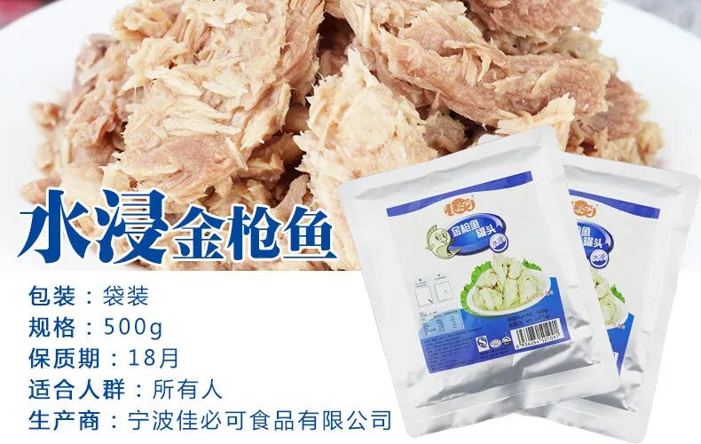 先说相对年轻的,如“佳必可”品牌,一大特点就是产品价格相对低廉,能以非常低的价格买到袋装金枪鱼,因为省去了铁罐成本,大约价格一公斤40-50元浮动,那可是一公斤!是成年人四顿的肉量。