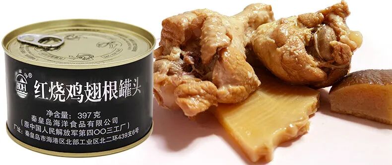 提到北戴河品牌,就忽然多了些钢铁洪流的气氛,北戴河前身是解放军4003厂,1960年建立的老老前辈。因为出身军旅,对肉食的钻研极其深厚,像牛肉、猪肘罐头那都是看家本领,压缩饼干也是很多求生爱好者的必买之物。但如果以为老革命只会躺在功劳簿上静静养老就错了,最近北戴河甚至把鸡翅膀塞进了罐头里…极其少见的鸡翅膀罐头呢…