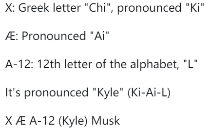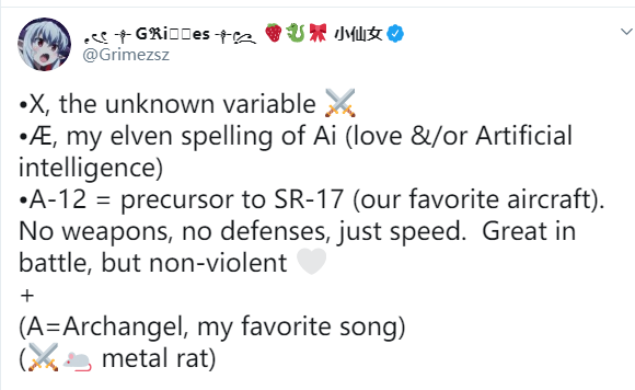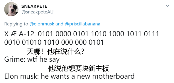 为了回应这个“玩笑”,格兰姆斯则在推特上,详细的解释了 XÆA-12 Musk 的由来。