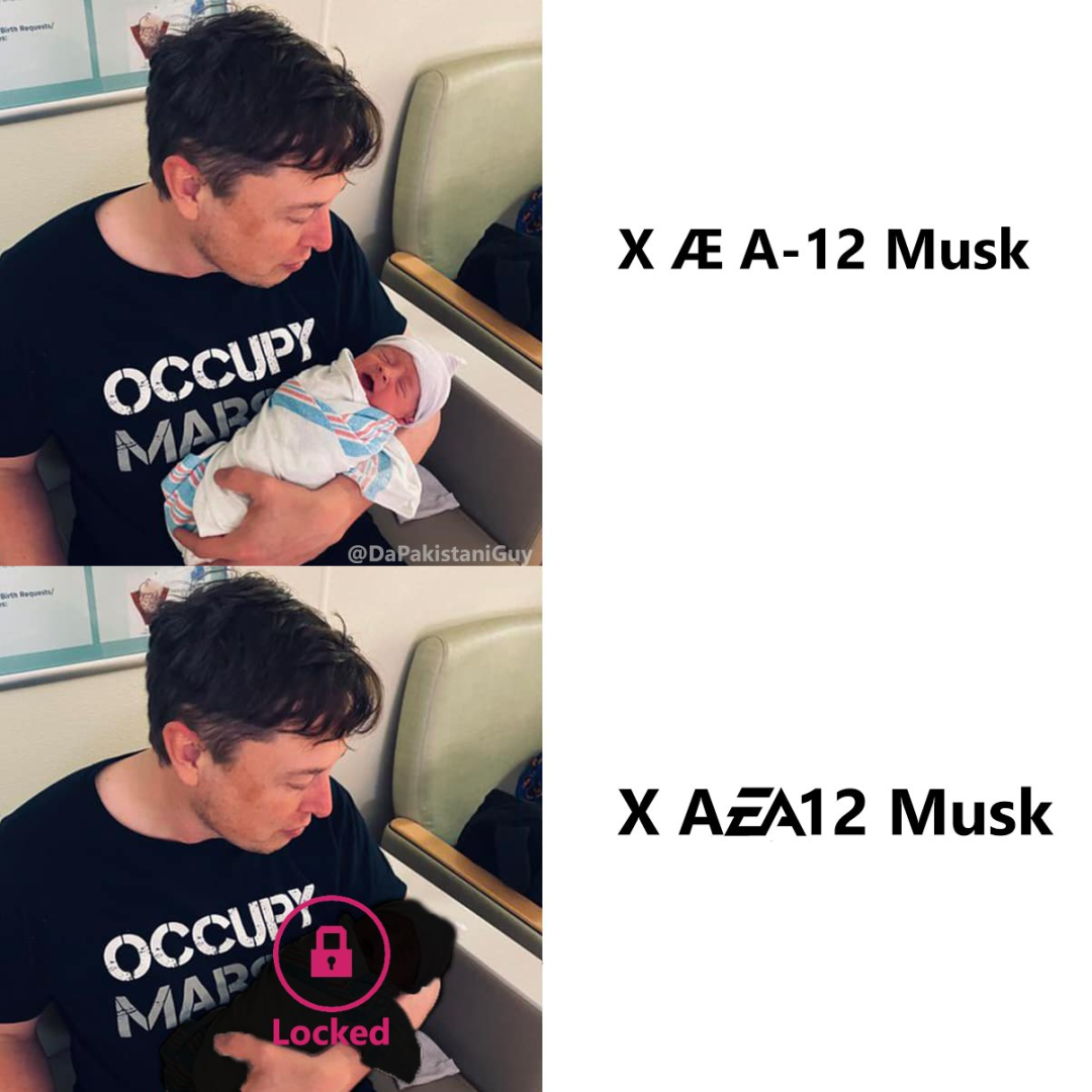 即使马斯克和格兰姆斯十分想给这个孩子起名XÆA-12,但却在法律上遭受了阻碍。律师表示,根据加利福尼亚州的出生登记册显示,婴儿名字只能包含26个英文字母。