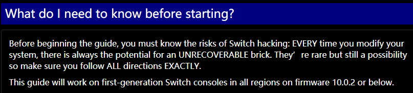 而在那些“Mod”使用说明页面中,也明确表示:如果进行这些操作,Switch会有着一定的风险,可能会出现不可逆转的变砖(也就是被ban机)现象,不过这些风险几率较小。
