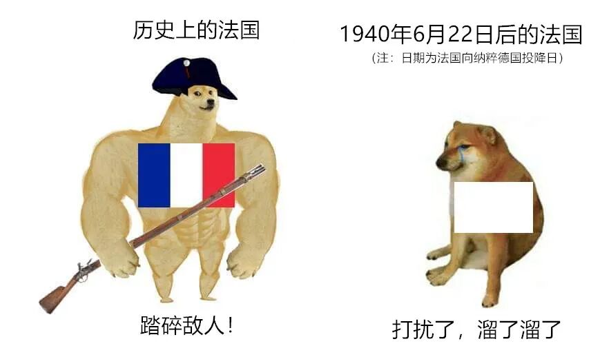 还有曾经的法兰西,拿破仑制霸欧洲大陆,逼半个欧洲组成联军,人见人怕鬼见鬼愁。而二战抵抗数周就投降之后,髪国就成了白旗的代名词。