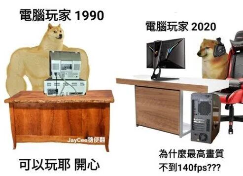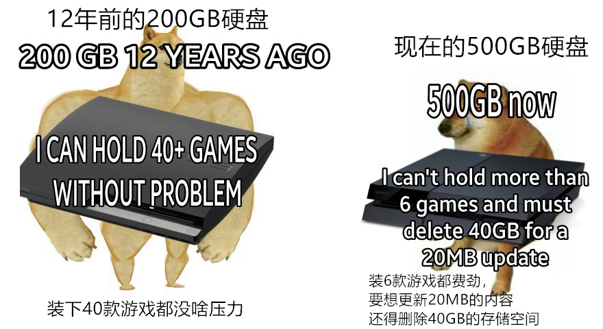 不论如何,这组梗图在给我们带来欢乐的同时,也让我们认识到了伴随着时间而到来的差距感。其实很多时候,右边那只“流泪汪汪头”并不可怜,毕竟正是因为时代的变革,才使现在的我们可以安心葛优躺、恰薯片,因为硬件与信息技术的进步,才使我们能够体验画质和玩法与以前都完全不同的游戏,让500G硬盘只能装6个游戏。