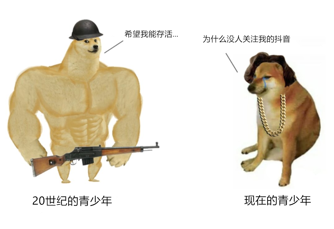 处于战争时期的年,青少年们都在硝烟四起的战争中留存活着的希望;而如今世上早已没那么多战争,青少年们自然也会开始对其他事情感到烦恼。对于现在的我们来说,这也不失为一种幸福。