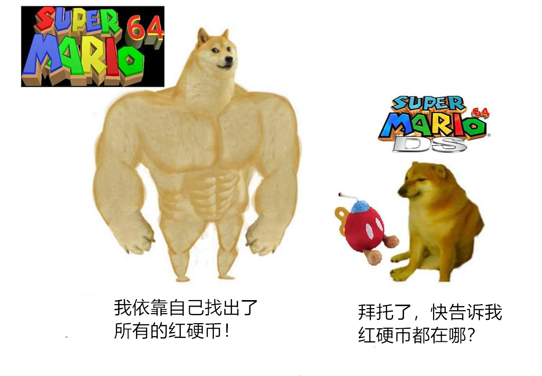 在那个游戏并不多的年代,《超级马里奥64》的玩家可以不借用任何攻略,将游戏里稀有的红硬币挨个找出,一个游戏也可以研究的十分透彻。而如今,游戏已不再是什么稀缺资源,拥有了众多游戏的NDS玩家为了完成游戏,只能向人寻求帮助,找出红硬币,像极了一卡关就找攻略的我们。