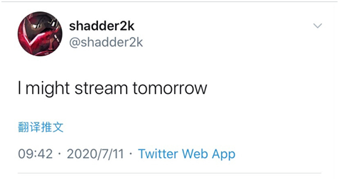 对于期待Shadder2k再次回归职业的声音,Shadder2k很坦诚地表示了拒绝,他的手伤至今仍然没有完全恢复,眼下,他只想享受到游戏和直播中去。