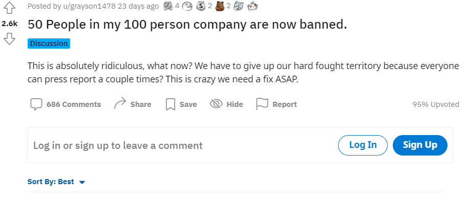 “我公会总共就100个人,现在已经有50个人被封,就因为别人随便点了几下举报按钮?”