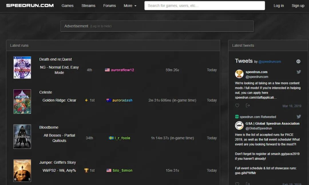 其它网站只是单纯陈列速通纪录,没有进一步的功能?Speedrun有一个功能完整的论坛,玩家可以在这里谈天论地,商讨怎么完善速通社区。