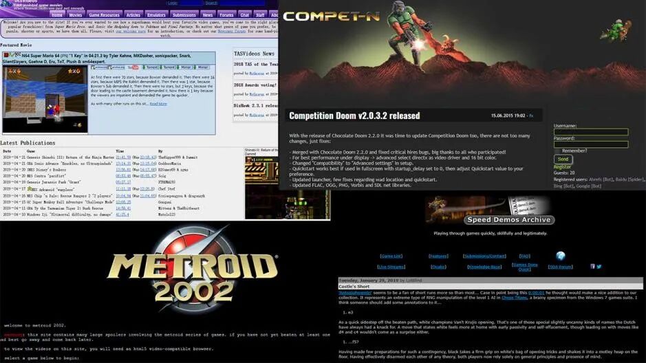 他们大多由游戏爱好者创建,这就不可避免会遇到一个问题,就是这些建立者往往喜欢什么游戏就只做某款游戏的速通,像COMPET-N只做《毁灭战士》的,Metroid 2002只做《银河战士》的。