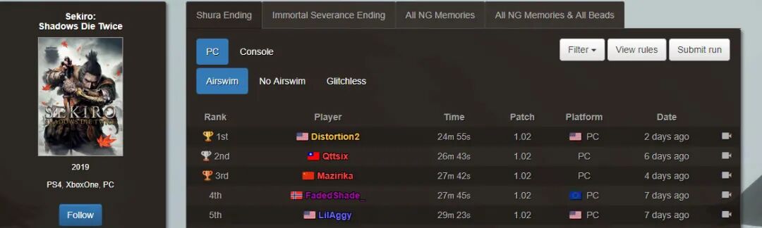 其它网站收录的速通资料不全?Speedrun在一开始成立的时候,目标就是想做一个综合类的速通社区,要包含不同游戏、不同类型的速通纪录。从经典的《超级马力欧64》,到此前非常火热的《只狼:影逝二度》。从无条件的最速通关,到100%完成度速通。只有玩家不做的,没有网站不收录的。