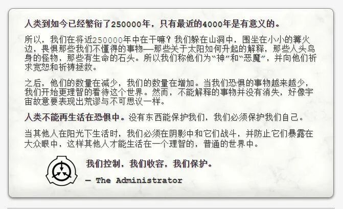 不少人是通过《SCP:收容失效》这样的游戏,或者一些介绍SCP的文章,而知道了SCP。