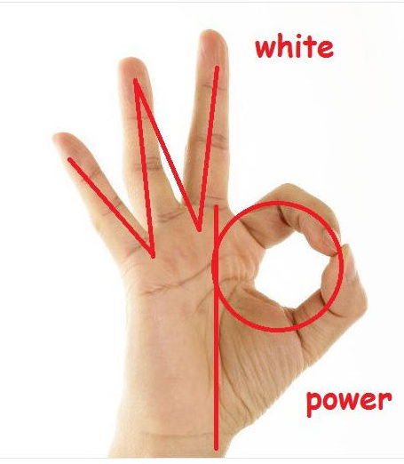 新含义始于2016年总统选举。在初选阶段,特朗普的竞选集会上,部分有影响力的支持者开始做这个手势。当时它的意思还是晦暗不明的。2017年2月,极右翼人士极其活跃的著名匿名社区4chan发起了名为O-KKK的行动,号召大家在推特和脸书上大面积使用“OK”手势,将其声明为白人至上主义的符号。在行动所附的图片中,三根指头代表“W”,圆圈与手掌代表“P”,意为“White Power”(白人权力)