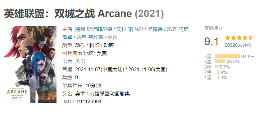 抛开游戏带来的情怀来看,《双城之战》的画面精良、剧情紧凑、人物脉络清晰、悬念十足,40分钟的时间里塞得满满当当,毫不拖沓。在网上的评论里,有不少观众表示,看完这3集共120分钟的动画后,感觉自己是看完了一部大手笔的动画电影,而不是一个简简单单的动画剧集。