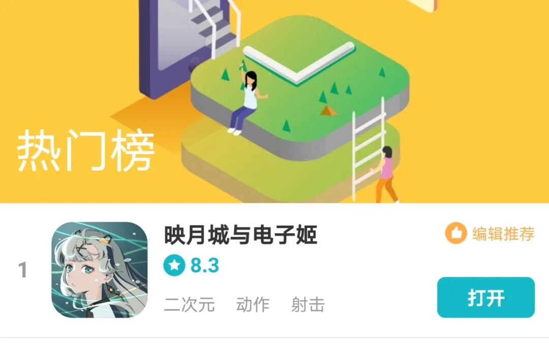 而《映月城与电子姬》,这个最近排在TapTap手游平台热度榜首位的游戏,如果你不打算仔细了解它,只是瞥一眼这二次元气息外溢的名称和照例用美少女大头贴做的图标,估计也就嘟囔一句:嗯,又一款二次元抽卡游戏罢了。再点开那剪得花里胡哨的预告片,翻到显示有“和小姐姐一起打小水枪”文字的游戏截图,你可能会觉得,宣传有点意思,但这玩法不就是弹幕射击吗?会有新东西吗?不太可能吧。