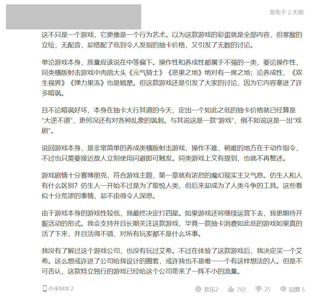 手游既有的那一套角色、养成、数值、抽卡是不是永远不需要改变?玩家是被资本规训才接受了现有的内容生态和商业模式,还是自己心甘情愿地接受算法与大数据的统治?如果有开发者想要做出一点点努力,帮助玩家反思可能早已内化的种种惯性,玩家会是什么态度?