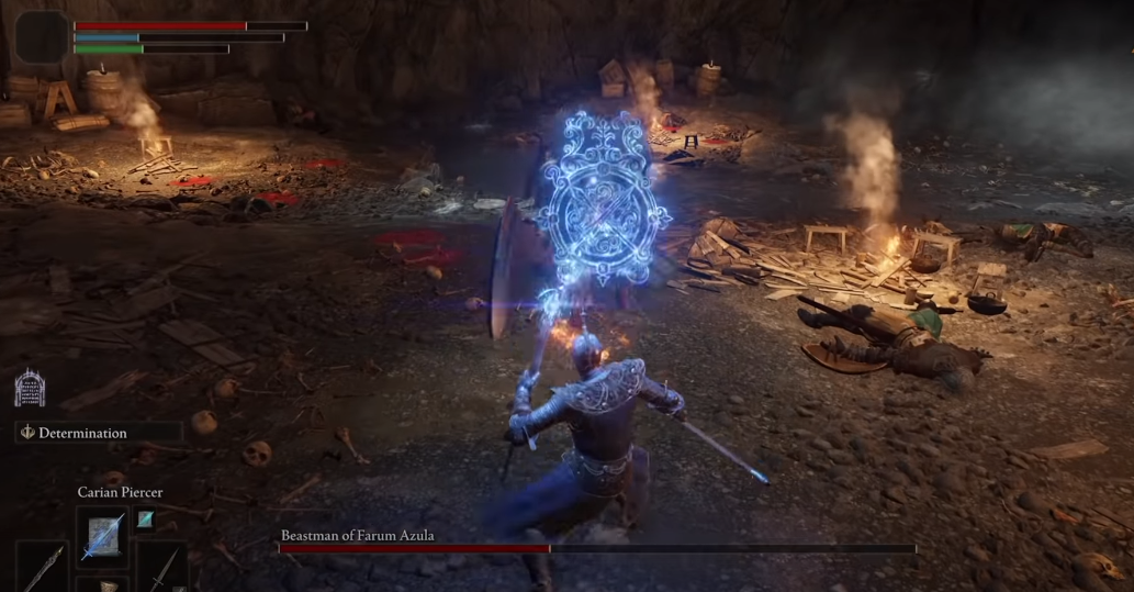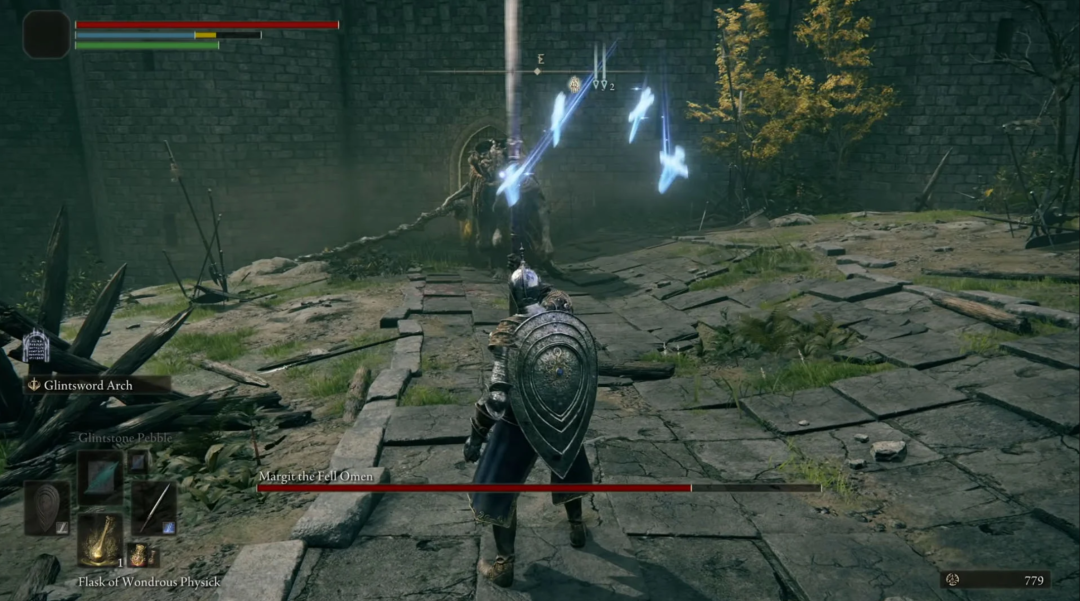 所以,《艾尔登法环》的基础玩法其实非常容易让人联想到《黑暗之魂》,红蓝绿槽,角色属性升级,左右手装备切换,装备战技,翻滚锁定,武器属性补正,死亡惩罚,等等等等,如果你熟悉《黑暗之魂》系列,基本可以做到快速上手。