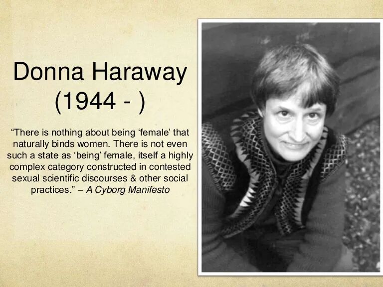 后现代女性主义学者唐娜·哈拉维(Donna Haraway)在其著作《赛博格宣言》中甚至宣称,运用技术将人改造成赛博格,是建立理想社会秩序的必要手段。她毫不讳言地说自己要构建一个模糊种种界限的“赛博格神话”,而义体设备模糊的就是人与机器的界限。技术的进步会造成社会的变革,她认为赛博格拥有改造自我的无限潜能,每个人都可以从改造身体开始,消除他与他人之间的生物差异,从而有望根本地消除性别、阶级、种族等等层面的不平等。