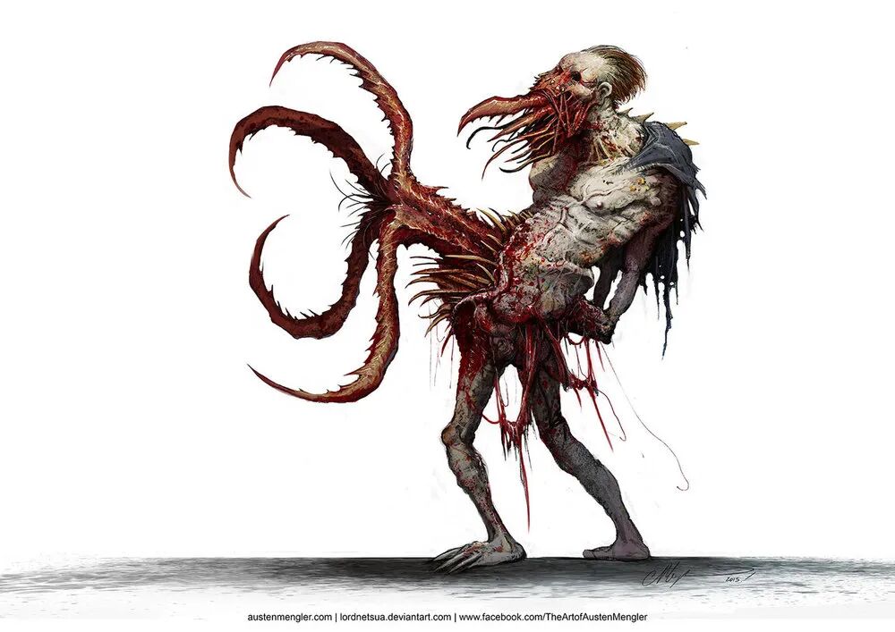 《死亡空间》中尸变体的造型则更诡异,在保留和扭曲人类的基本特征基础上,突出“寄生感”,暗示造型内部存在其他东西,并且已经突破原本的肉身