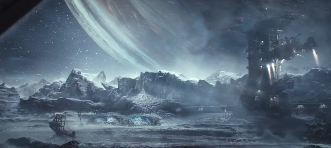 预告片结尾的大远景,很明显游戏的舞台发生在木卫四上,我们可以清晰观测到木星表面。现实中的木卫四最早由伽利略在1610年发现,天文学家通过光谱测定得知木卫四表面物质包含冰、二氧化碳、硅酸盐和各种有机物,并且可能有海洋存在,因此木卫四一直以来都被认为设置木星探索基地的最佳地点,游戏将舞台选在木卫四上显然有着独特的寓意。
