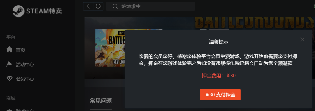 而且不仅如此,一般在正版游戏里开挂被封,往往申诉流程冗长,基本也不可能获得解封。而假Steam却引进了海洋法系的保释金制度,只要交付押金就能够第一时间放出来。又一次的体现它对玩家批评为辅,金钱为主的人本精神。