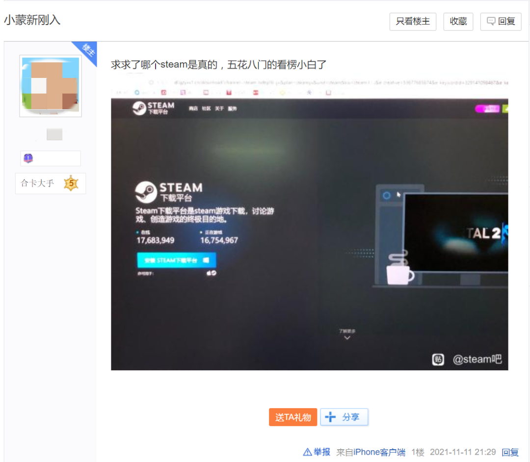 如今国产品牌总算可以抛掉“Made in China”就是劣质山寨的刻板印象,可打着正版的旗号,消费着新生代玩家的正版意识来充实自己钱包的假Steam无疑是将10年前的“山寨”精神又重新捡了起来,当我们点进百度Steam吧,看到几乎每隔一段时间都萌新因为下载假Steam发帖而被取笑的时候,我真的很想问一句:十年过去我们真的进步了吗?