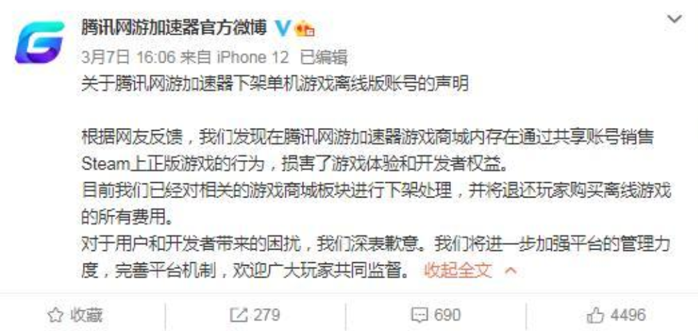 据说,腾讯两部门还曾为此大吵过一架。但最终直到3月5日《鬼谷八荒被腾讯离线盈利,这波真把我恶心坏了》的视频引爆了舆论,这些个合作入口才伴随着腾讯网游加速器的一纸道歉声明下架。