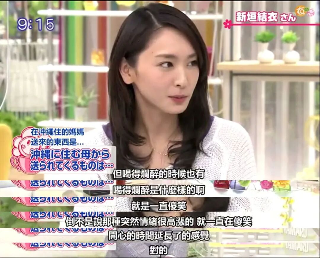 在9月份的《皮蛋壳康康》里,新垣结衣与4年前共演“逃耻”的三个演员重聚,喝完一整杯啤酒之后,她又喝完了一杯多的High Ball(碳酸饮料与酒类混合的鸡尾酒,最有名的是威士忌混合苏打水),即使如此,Gakki面对主持人的提问依旧思路清晰。