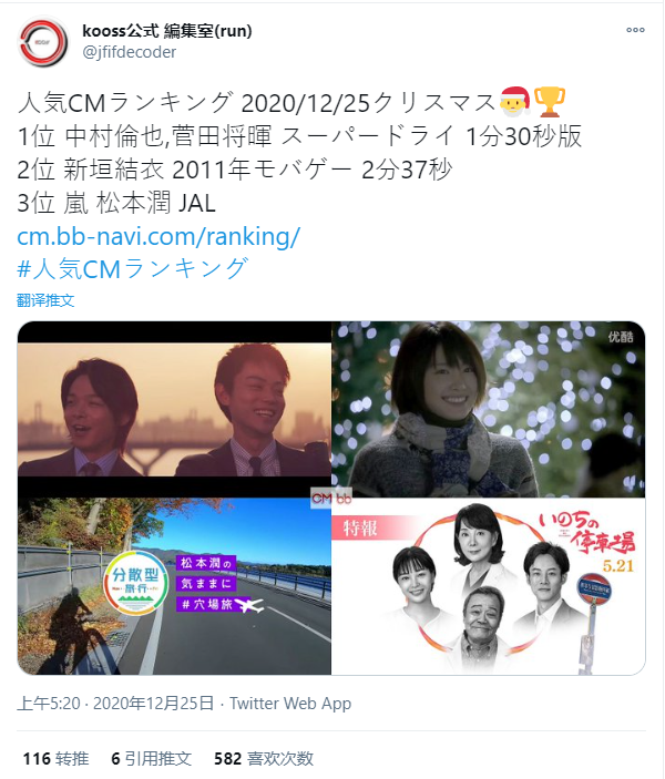 九年过去,直到今年的圣诞节,还有日本观众重温这支CM,并登上了当天的热门广告排行榜。