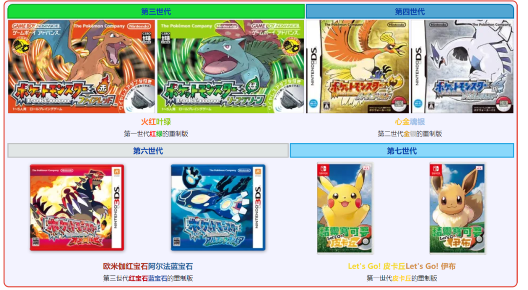已有的宝可梦重制游戏(来源:神奇宝贝百科)